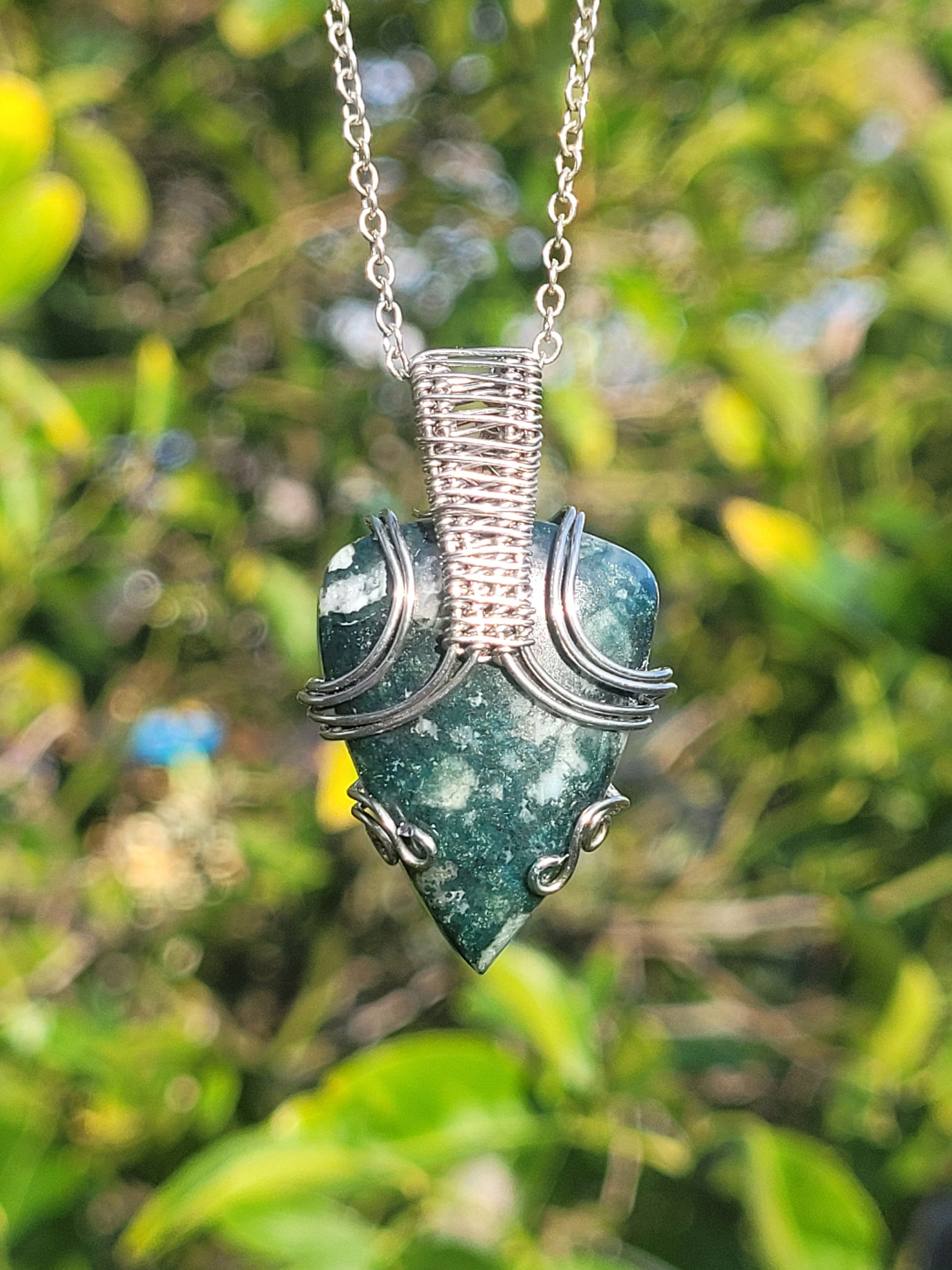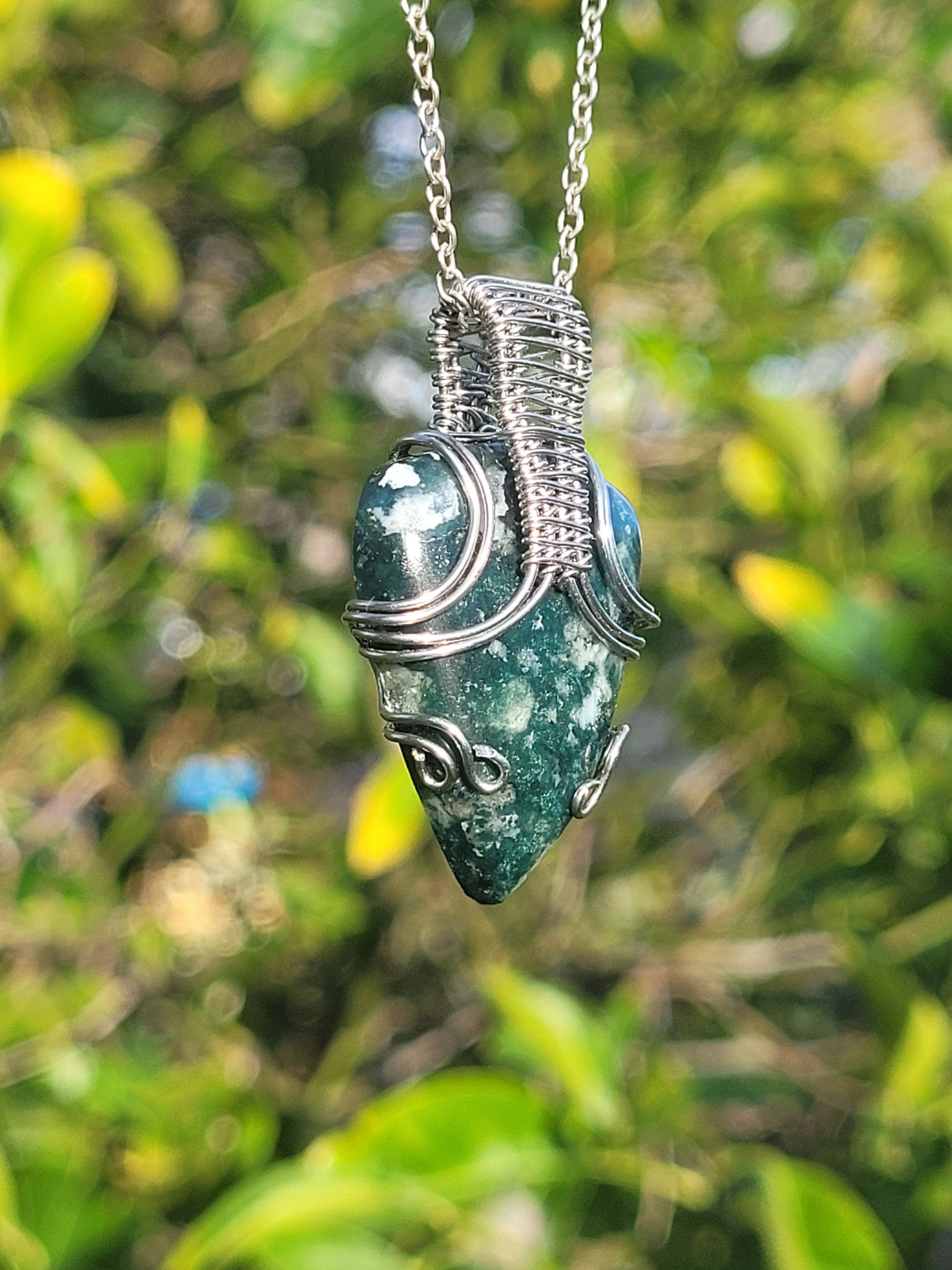 This one of a kind pendant features a natural Moss Agate selected for its quality and character.